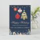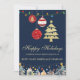 Celebra Navidades, Año Nuevo y la temporada navideña con la invitación de Navidades de esta festiva empresa de negocios con luces de cuerdas de colores, adornos, un árbol de Navidad moderno y suave nieve en el fondo. Cualquier pregunta de diseño, sólo envíe una charla y estaremos encantados de asistirle.