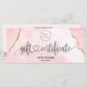 Esta moderna y elegante tarjeta de regalo de Rubor Pink Agate con caligrafía moderna es perfecta para artistas de maquillaje, negocios de extensión de pestañas, extensión de latigazos, bloggers de moda, bar de cenizas, salón de belleza, boutique... añada tu logo para un aspecto más profesional.