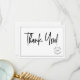 Muestre aprecio a sus clientes con esta moderna tarjeta de agradecimiento con logotipo personalizado diseñada especialmente para pequeñas empresas y tiendas en línea. Con un diseño minimalista limpio y un mensaje audaz y escrito a mano de “Gracias” en la parte frontal y espacio para su logotipo, sitio web y enlaces de redes sociales en la parte posterior, esta tarjeta ayuda a fortalecer su marca mientras construye la lealtad del cliente.