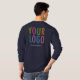 Personalice fácilmente esta camisa azul marino de manga larga con el logo de su propia compañía y el texto personalizado. Opcionalmente puede imprimir tanto en la parte trasera como en la parte delantera.* Estilo unisex para hombres y mujeres disponible en otros colores y tamaños adultos S a 2XL. Fabricado con algodón cortado a presión. No hay cantidad mínima de pedido ni cargo de instalación. *Este diseño incluye una plantilla trasera para su comodidad. Si opta por borrar la parte posterior, se le cobrará la cuota de impresión posterior, por lo que ve un precio más bajo cuando sólo tiene un diseño frontal. Sugerencia de diseño: Seleccione la opción "Impresión intensa: subbase blanca", donde esté disponible, para que los camisetas de color oscuro aseguren que el texto y los gráficos se vean óptimos en el fondo oscuro. Zazzle cumple todos los pedidos de productos de Zazzle. MISOOK NO tiene su información de personalización, envío o tarjeta de crédito, por lo que contacte directamente con Zazzle para cualquier pregunta, incluyendo preguntas sobre la personalización de su diseño.
