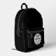 Mochila NEGRA promocional personalizada personalizado. Plantilla de texto curvada de personalizable BLANCO que rodea tu propia foto, logotipo, imagen y con máscara de fondo NEGRO detrás del texto para una personalización totalmente optimizada. Esta mochila de poliéster duradero es de 17 " x 12,5" de ancho x 5" de profundidad, tiene dos compartimentos internos, una bolsa de almacenamiento para portátiles, un bolsillo lateral de malla externa y una etiqueta de identificación. Ideal para viajes escolares o excursiones en grupo, promoción de empresas de viajes y otro marketing de negocios orientado a grupos. Crear, crear su propio diseño de Mochilas personalizadas con un ajuste de texto sencillo y personalizado en arco, circular, redondo y redondo.