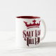Taza roja con el logotipo real del ejército en un lado y Salt Lake rojo hasta mí muero en el otro.