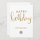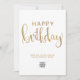 Moderna y elegante impresión minimalista de dos caras Business Happy Birthday Flat Greeting Card con simulación de texto falso con letras de la mano purpurina de oro sobre un fondo blanco. Por favor, tenga en cuenta que el oro de este diseño es una impresión de color beige amarillo plano y que no es un Relieve metalizado metalico de oro ni es purpurina. Cambie la imagen de "su logotipo aquí" con su logotipo o quítela si desea utilizarla sin un logotipo. No olviden también el personalizar del texto frontal y posterior. Perfecto para sus empleados, socios comerciales y clientes.