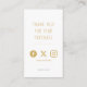 Tarjeta de texto para el recinto de texto en blanco y dorado para dar las gracias a sus clientes e incluirlos en su embalaje de pedido. La tarjeta tiene enlaces sociales de color negro. Si quieres que cambien los íconos sociales, por favor contáctame.
