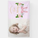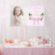 ¡Ella es de dos fantasías! Colección de cumpleaños con un delgado arco rosado entre una corona de rosas. Tipografía con escritura dorada sobre un fondo púrpura pastel. Plantilla de foto vía Pixabay bajo licencia CC0 y debe ser reemplazada por su propia foto