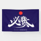 山の形を模した「必勝」筆文字です。その山の頂点に日の丸(日本国旗のシンボル)を置く事で富士山のてっぺんを目指す。すなわち日本一を目指す勝利を意味しています。