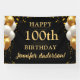 ¡Celebra con estilo con nuestro banner de celebración de 100 años de negro y oro! Este elegante banner está diseñado con un llamativo fondo negro, acentuado por detalles dorados brillantes, creando un ambiente lujoso y festivo. Perfecto para una celebración de un hito, cuenta con un texto de personalizable para honrar al invitado de honor, añadiendo un toque personal a la decoración. Ideal para ambientes interiores y exteriores, este banner duradero hace una declaración mientras establece el tono para una celebración inolvidable.