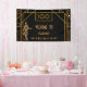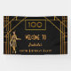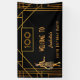 Elegante banner de bienvenida dorado y glam para una fiesta de cumpleaños número cien. El estilo Art Déco se burla del oro y el negro para una celebración glamurosa. Decorado con un estilo años 20, con un estilo flapper chica y un estilo art decó. Plantillas para los 100 años y un nombre.