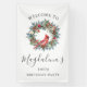 Elegant watercolor red cardinal framed by a classic winter pine wreath. Red and white flowers, berries and pinecones add to the greenery. All the text is editable.