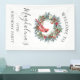 Elegant watercolor red cardinal framed by a classic winter pine wreath. Red and white flowers, berries and pinecones add to the greenery. All the text is editable.