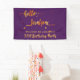 Banner elegante y moderno para un fiesta de 21 años. Fondo de color morado y texto de oro falso escrito con un guión de moda con letras a mano: hola twentyone. Con puntos dorados como decoración. Plantillas de nombre y texto: Bienvenido a... letras de oro. Puede cambiar el color de fondo para que coincida con el tema. Haga clic en personalizar y, a continuación, seleccione un color de fondo a la derecha.