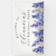 Las elegantes flores de larkspur azules de color acuático de verano crean un hermoso borde floral al final de esta fiesta de cumpleaños banner de bienvenida, flores de larkspur o delfinio son la flor de nacimiento de julio. Una moderna combinación de fuentes le da una estética moderna. Todo el texto es editable.