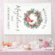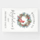 Elegant watercolor red cardinal framed by a classic winter pine wreath. Red and white flowers, berries and pinecones add to the greenery. All the text is editable.