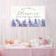 Las elegantes flores de larkspur azules de color acuático de verano crean un hermoso borde floral al final de esta fiesta de cumpleaños banner de bienvenida, flores de larkspur o delfinio son la flor de nacimiento de julio. Una moderna combinación de fuentes le da una estética moderna. Todo el texto es editable.