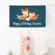 Cartel de cumpleaños con un dibujo de dos zorros rojos. Uno de pie sobre el otro tendido. Dibujado con acuarela.