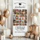 Estandarte de Graduación que se puede utilizar como letrero de bienvenida o fondo para fotos. Un guión moderno y una gorra de graduación hacen de este un diseño minimalista y moderno con tipografía negra sobre fondo blanco. Una forma divertida de capturar recuerdos y compartirlos con amigos y familiares en tu fiesta de graduación.