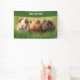 Haga especial su evento con este encantador cartel que incluye tres adorables conejillos de indias escondidos en un exuberante pasto verde. Con espacio en la parte superior para tu mensaje personalizado, este banner es perfecto para cualquier evento o celebración. La decoración es divertida, con un toque único y alegre, y atrae a los amantes del conejillo de Indias.