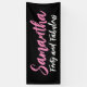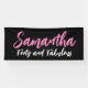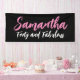 Banner de cumpleaños de diseño sofisticado y bonito. El texto es totalmente personalizable. Adecuado para el fiesta de 40 años o cualquier otra ocasión. Fuente rosa y blanca contra fondo negro.