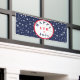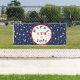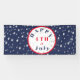 Cartel del 4 de julio con fondo rojo blanco y azul con estrellas plateadas.