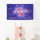 Las huéspedes agradables al 4tas del fiesta de julio con esta bandera brillante llenaron de estallar los fuegos artificiales blancos y rojos en un fondo azul. Texto de la celebración de la independencia de los E.E.U.U. con Hooray, Yay y más expresiones de la alegría y de la ayuda. Una recepción grande en el texto superior y de encargo en la parte inferior se puede personalizar con el texto conocido o especial usando la plantilla proporcionada.