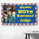 Coloca esta colorida pancarta de fotos de flores rosadas de cumpleaños número 50 para celebrar su día especial. Personalízalo con su foto, nombre y edad. Este audaz cartel floral presenta flores rosas y un fondo azul audaz con texto amarillo brillante.