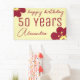 Colgar este cartel de 50 años de Borgoña donde todos pueden ver. Cuenta con flores abstractas de color rojo oscuro sobre un fondo amarillo pálido. Personalízalo con el nombre y la edad del destinatario. Incluso puedes cambiar la ocasión. Abróchense su cumpleaños con este elegante cartel.