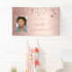 Una pancarta para una fiesta de cumpleaños 50 de muchacha y glamurosa. Una falsa rosa de fondo metálico dorado con brillantes y purpurinoso estrellas goteantes. Personalice y agregue su propia foto, un nombre escrito en oro rosa oscuro con un gran guión de estilo moderno con letras a mano con chispas. Para que los cambios sólo eliminen el nombre del ejemplo, deje los espacios o la emoji delante y después del nombre. Plantillas para una fecha y edad de 50 años. Es perfecto como una banner de bienvenida o como decoración fiesta.