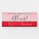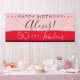 Bloque de color 50 y Banner de cumpleaños fabuloso. El rosa de arriba tiene Feliz Cumpleaños y un sutil patrón de repetición de 50 Fabuloso. El bloque rojo tiene 50 y Fabulous y un pequeño bloque negro en la parte inferior añade la cantidad correcta de acento. Personalizable fácil. Pares hermosos con otras piezas de esta colección.