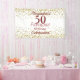 50.º Fabuloso banner de fondo blanco burdeos y purpurina de oro. Diseño sencillo y elegante para la dama de cumpleaños. Para más diseños en esta colección, visite zazzle.com/NLRDesigns