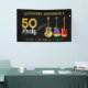 Fiesta de cumpleaños 50 Rocks personaliza oro de guitarra y banner negro para él. Banner de 50 años de rock and roll con tres guitarras psicodélicas sobre fondo negro. Una guitarra eléctrica con patrón de llama de fuego y protector de escotilla roja, una guitarra multicolor semiacústica y un ilustracion de arte de guitarra acústica clásico psicodélico con tipografía fresca moderna en negro y oro personalizada. Esta plantilla fácil de usar para cambiar la edad y el nombre crea el signo fiesta perfecto para celebrar el cincuenta en estilo rock n roll y es ideal para un guitarrista, músico y amantes de la música. Cualquier guitarrista te dirá que nunca puedes tener demasiadas guitarras. Este moderno diseño musical de instrumentos musicales celebra la energía musical de este maravilloso instrumento musical y es la manera perfecta de rodar una celebración de 50 años. Pintura original de la artista Catherine Sweetman