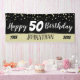 ¡Felicitaciones por este gran hito en tu vida! Este banner tiene una divertida tabla de confeti con fechas personalizados y opción de nombre. El banner de la fiesta de cumpleaños número 50 puede cambiarse a otras fechas si es necesario.negro