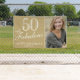 50 y Fabulous Modern Golden 50th Birthday Photo Banner. Gran señal para la fiesta de cumpleaños número 50 con una foto personalizado, inspiradora y divertida diciendo 50 y fabuloso y texto en escritura blanca a la moda. El fondo es dorado y el texto es de colores blancos. Personaliza el cartel con tu foto, tu nombre y el número de edad, y haz tu propio banner de fiesta de cumpleaños. Es genial para la fiesta de cumpleaños de una mujer.