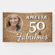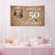 50 y Fabulous Gold Purpurina 50th Birthday Photo Banner. 50.º telón de fondo de la celebración de cumpleaños. Personaliza con nombre y foto.