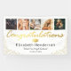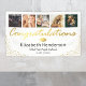 Banner moderno de la fiesta de graduación con un fondo blanco limpio que se puede cambiar a cualquier color, un collage de 5 fotos del graduado, un purpurina brillante de oro y una plantilla de felicitaciones que es fácil de personalizar.