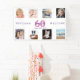 Bienvenidos a una fiesta de cumpleaños número 60 para una mujer, celebrando su vida con un collage de 8 fotos. Foto de familia, amigos, mascotas, vacaciones. Plantillas para un nombre, edad 60 y fecha. Con el texto: Bienvenido (x2) Cartas de color rosa y púrpura. Elegante fondo blanco.