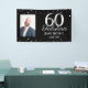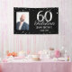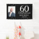 Elegante banner negro de 60 años con el ajustable Happy Birthday y Custom Name Text. Elige tu foto favorita y sube. Confeti de plata de Relieve metalizado falso y número 60.