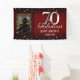 Elegante banner de cumpleaños 70 de Maroon con texto ajustable de cumpleaños feliz y nombre personalizado. Elige tu foto favorita y sube. Confeti de plata de Relieve metalizado falso y número 70.