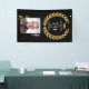 70 ¿Y qué? Corona de Laurel Divertida Foto Cumpleaños Bandera. Una cita divertida 'Estoy 70 ¿Y qué?' en fuentes modernas y negritas. El diseño tiene una corona de laurel alrededor de las palabras y una corona encima del nombre personalizado. Agrega tu nombre y foto. Decoración perfecta para la fiesta de cumpleaños de un hombre con sentido del humor.