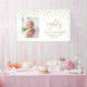 Ayúdenla a celebrar su cumpleaños 80 con estilo con este sencillo pero elegante cartel, con falsos confeti triangular de Relieve metalizado de oro que se posan en su foto y la palabra "ochenta" con letra de escritura a mano en oro sobre fondo blanco. Reemplace fácilmente la imagen de ejemplo con una foto de su elección. Personalice el texto con el nombre del honorario en el tipo de letra dorado sans serif, junto con la ocasión y la fecha a continuación en el tipo de oro más pequeño.