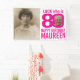 Mira quién es 80 personalizados dos fotos ahora y después y nombra el cartel de la fiesta de cumpleaños número 80. Divertido diseño gráfico de cumpleaños fotográfico personalizado en rosa caliente sobre blanco. Personalice con una fotografía del chica de cumpleaños en el medio del número 0. Excelente idea para agregar algo de diversión a una fiesta de cumpleaños número 80. Existen otros elementos y colores coincidentes. Diseño exclusivo de Sarah Trett para www.mylittleeden.com