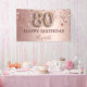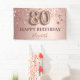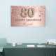 Elegant, classic, glamorous and girly for a 80th birthday party. Rose gold and blush pink, gradient background. Decorated with rose gold and pink stars. Personalize and add a name. With the text: Happy Birthday. The name is written with a modern dark rose colored hand lettered style script. Number 80 is written with a balloon style font.