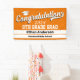 Felicita a tu graduado de octavo grado con esta pancarta blanca y naranja. El diseño tiene un aspecto deportivo.