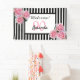Elegante, glamuroso y femenino para una fiesta de cumpleaños número 90. Bandas verticales clásicas y de moda delgadas en blanco y negro. Decorado con flores rosas, rosas. Plantillas para un nombre y la edad de 90 años. Con el texto: ¡Bienvenido! ¡Girona y elegante! Letras negras y rosas. El nombre está escrito con una escritura de estilo con letras a mano moderna.