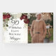 Elegante y elegante rosas florales de color rojo oscuro y burdeos con perlas de semilla en un marco de color sepia "90 and Fabulous" diseño de fiesta de cumpleaños de Holiday Hearts Designs.