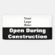 Puede reemplazar la imagen superior por el logotipo de su empresa. Además, puede editar el texto blanco en la parte inferior para mostrar su mensaje personalizado (mostrado: Abrir durante la construcción)