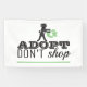 Adopta No Comprar, Cartel con sello de Stampedy. Difundan la voz para que todos vean que la adopción es mejor que comprar. Adoptar un perro puede salvar dos vidas, no sólo salva al perro que es adoptado, sino que también crea un lugar en un refugio para salvar a otro perro de las calles. Esta pancarta es una gran manera de abrir los ojos de la gente al hecho de que adoptar siempre es mejor que comprar, después de todo, ¡un perro es un ser, no un producto!