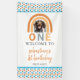 ¡Haz que tu pequeño cumpla 1 año sea inolvidable con este adorable cartel con tema canino! Con un arco iris acuático vibrante, huellas de pata y un lindo cachorro, este cartel de personalizable le da un toque divertido y colorido a su celebración. Ideal como telón de fondo o para dar la bienvenida a los clientes al fiesta de la pata.