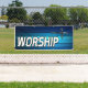Lona adoración azul de la cruz y de los tablones