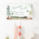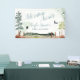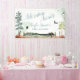 Cartel de Adventure Awaits. El diseño presenta una escena de montaña con árboles y una textura acuática. El Metro-Events Zazzle shop y Metro-Event.com ofrecen suministros adicionales de fiesta.