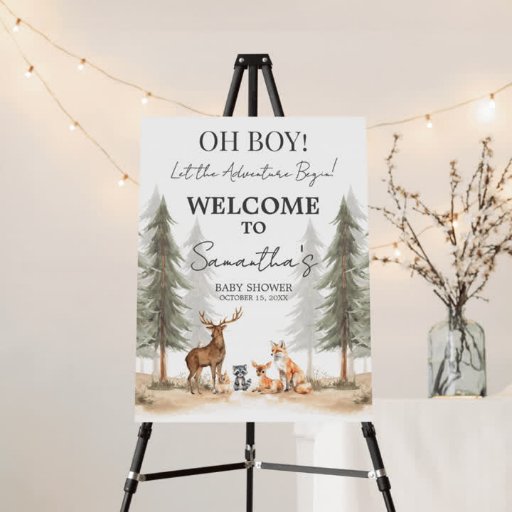 Adventure Begin Woodland Animal Baby Shower | BS64Diseñado por Highlights Creatives